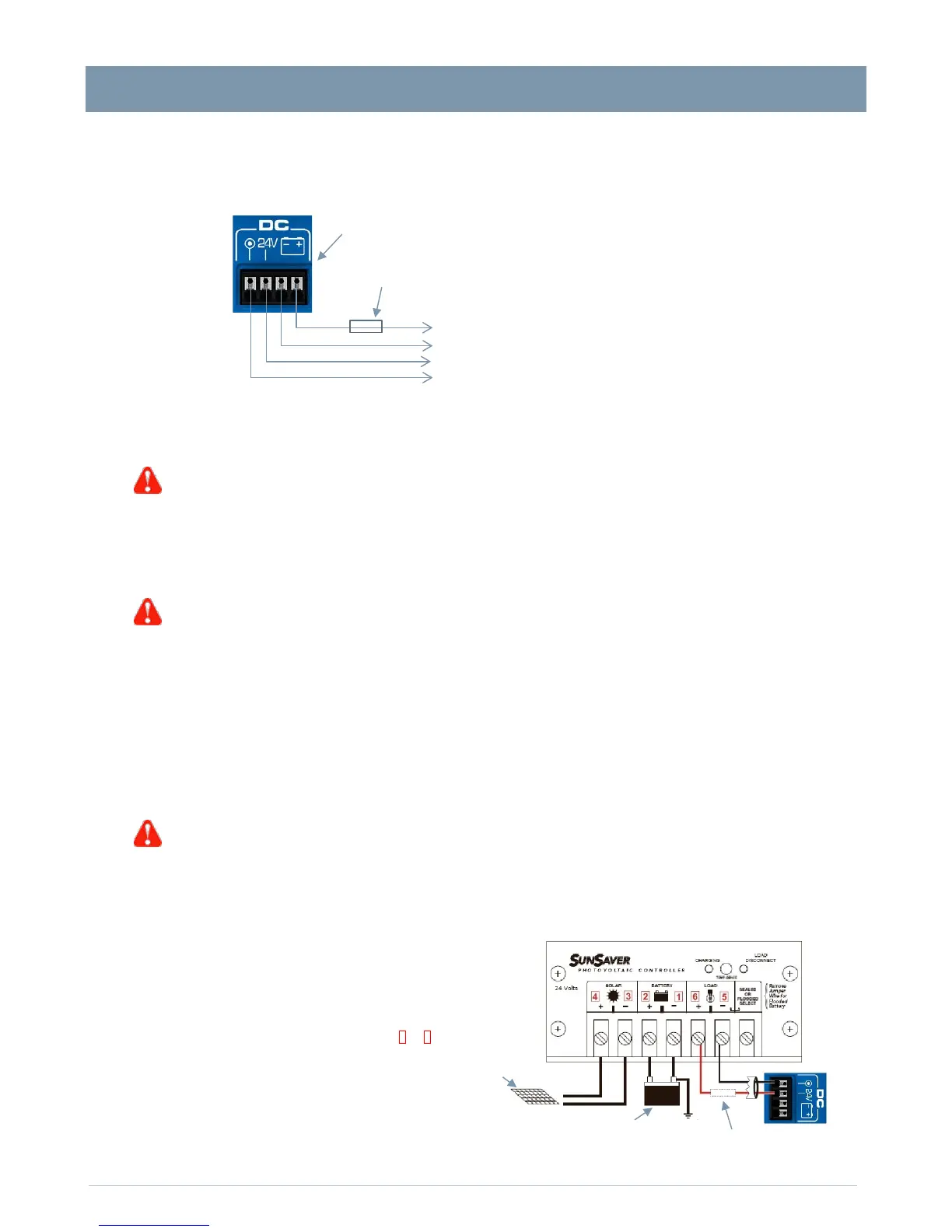 5A fuse: Installation of a fuse is recommended on the Battery input.