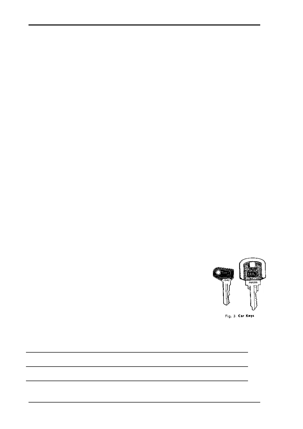key (Fig. 3) for the ignition switch, and a smaller one for the doors.