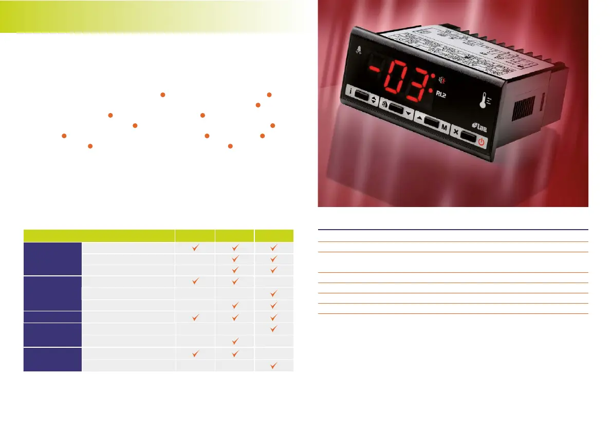 NTC10K or PTC probe input Integrated defrost functions Auxiliary output congurable