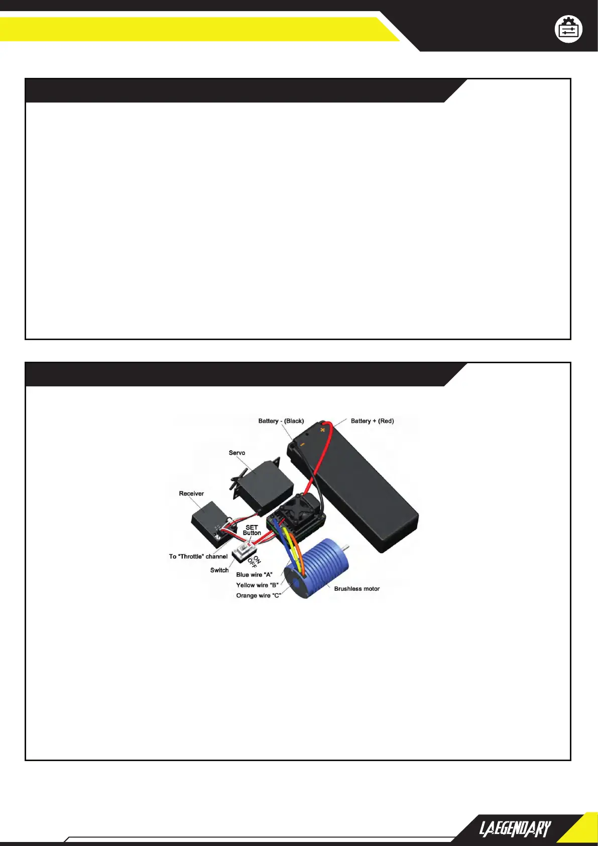 1. Connect the ESC, motor, receiver, battery and servo according to the following