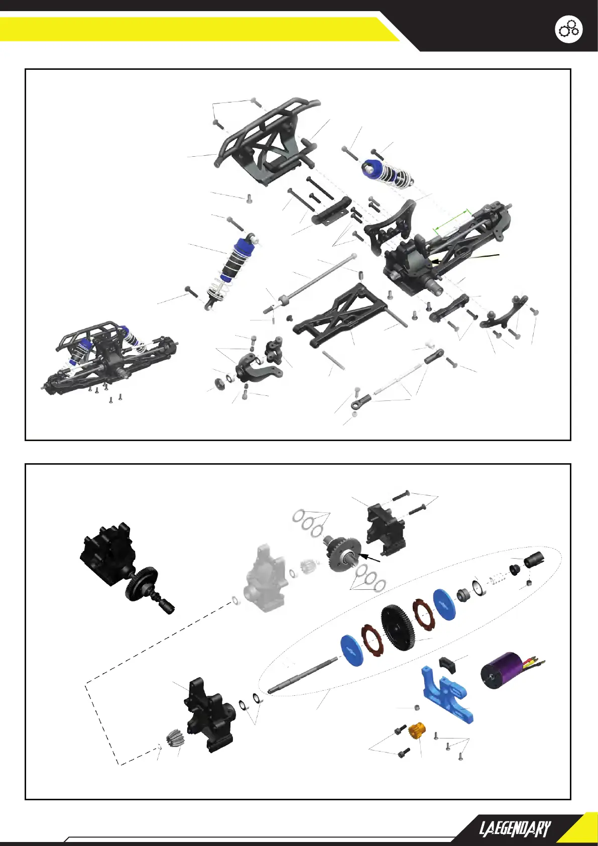 LAEGENDARY THUNDER - Anatomy of the THUNDER - Chassis Sections; Front Assembly Diagram; Rear Gearbox, Slipper, and Motor Assembly