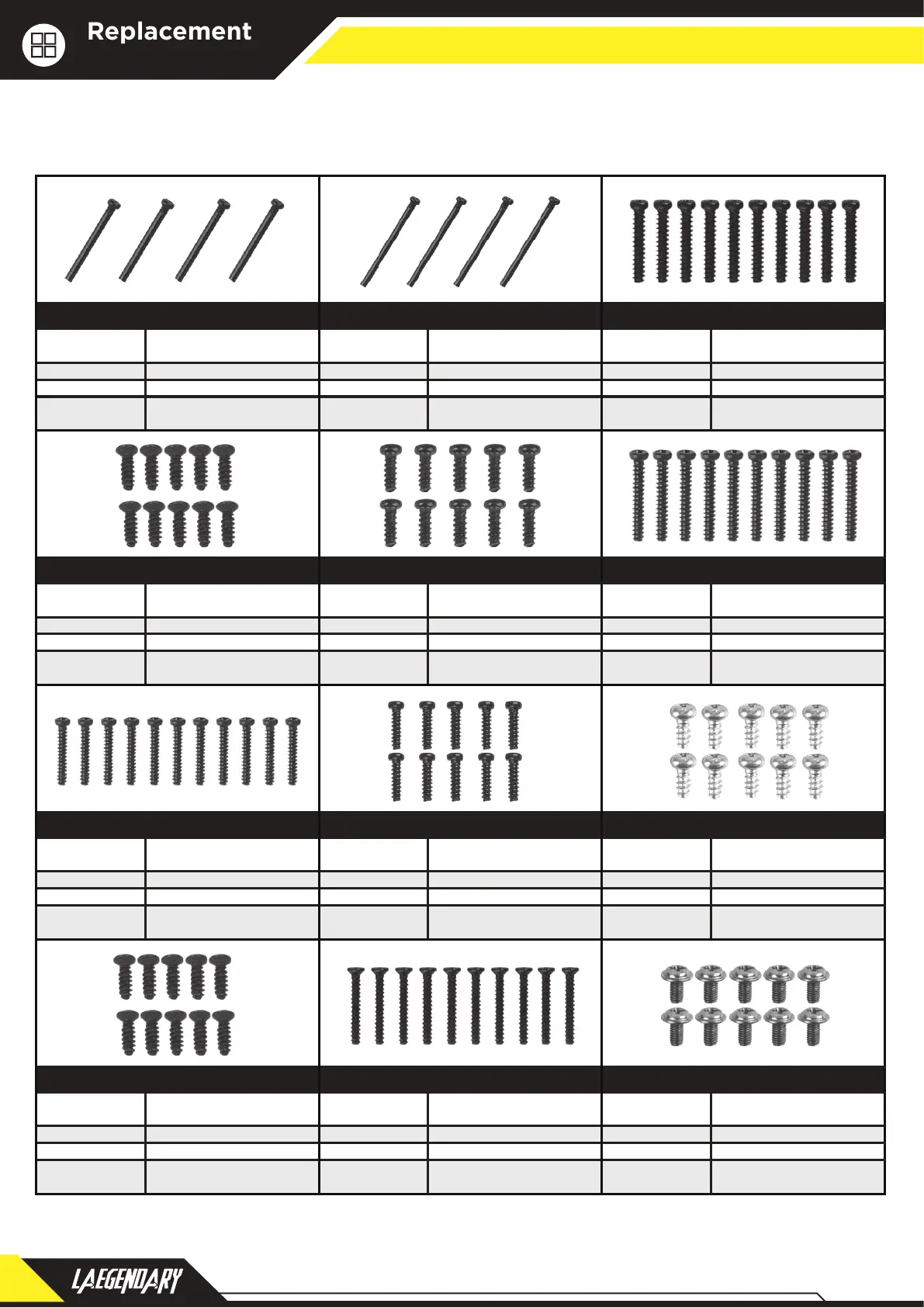 LAEGENDARY TORNADO - Replacement Parts Catalog; Screws, Fasteners, and Small Parts