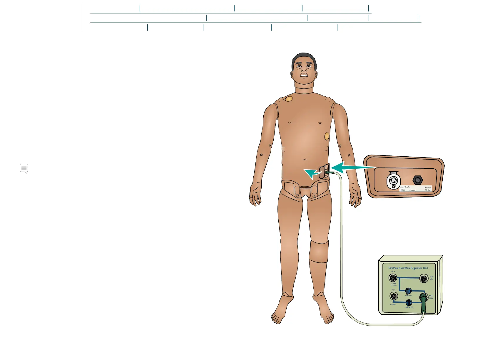 Simulator’s torso. Access the panel by lifting up the skin flap