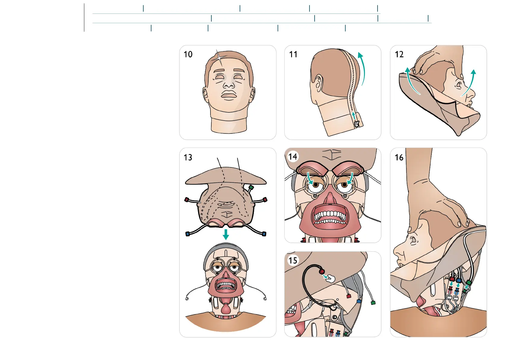 14. Align eye sockets over eyes, align airway tube with right