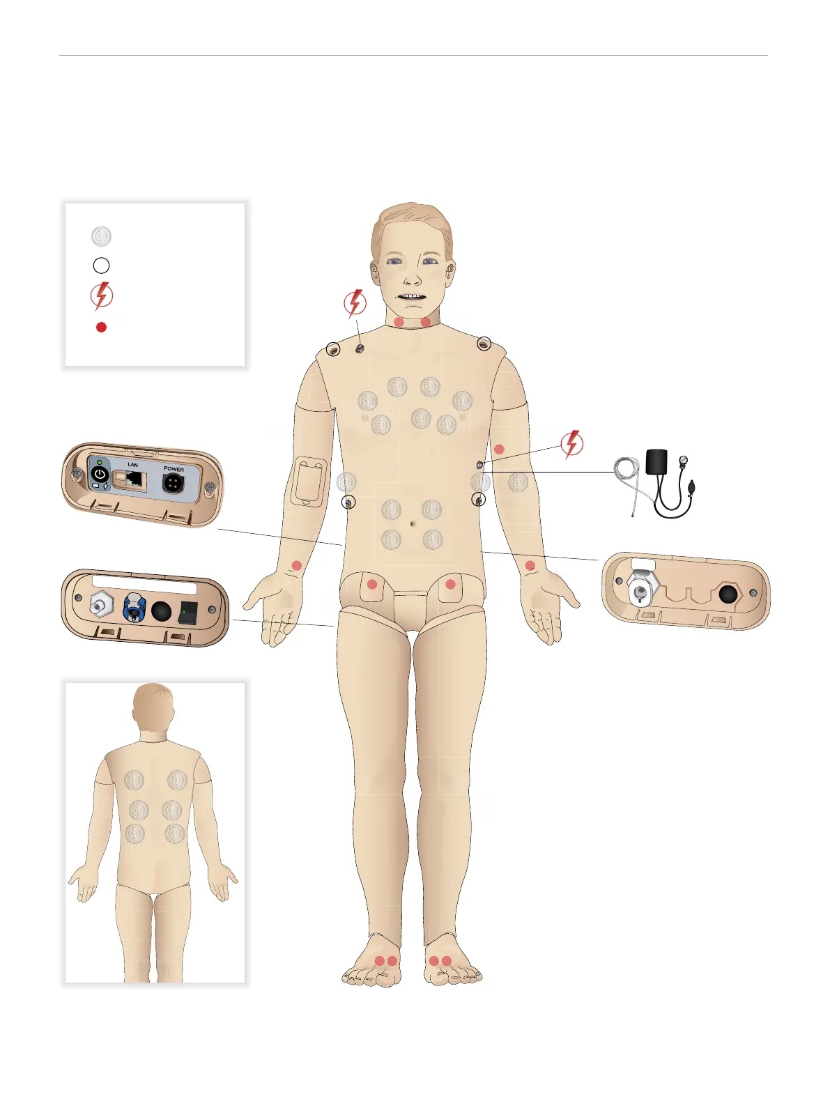 laerdal SimMan Essential - SimMan Essential Overview Diagram; Manikin Component Identification; Power and Air;CO2 Panel Locations