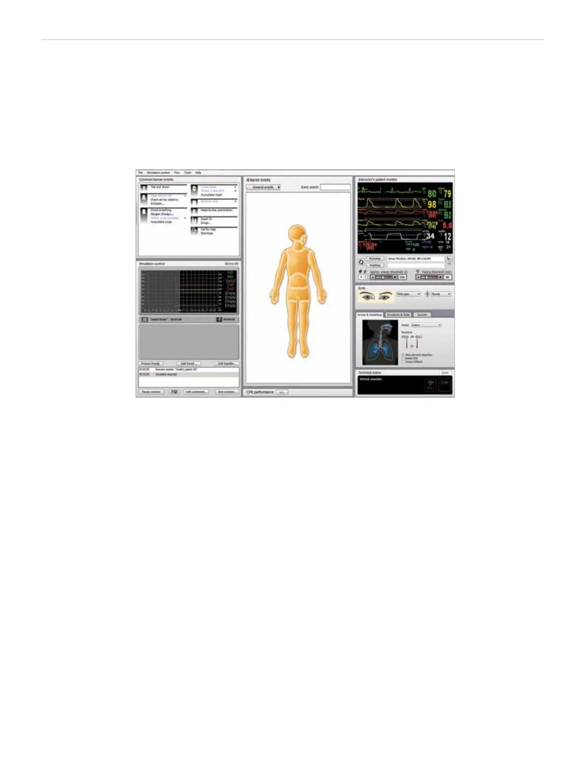 The Instructor’s Patient Monitor shows the patient’s current status. To manually adjust the patient parameters: