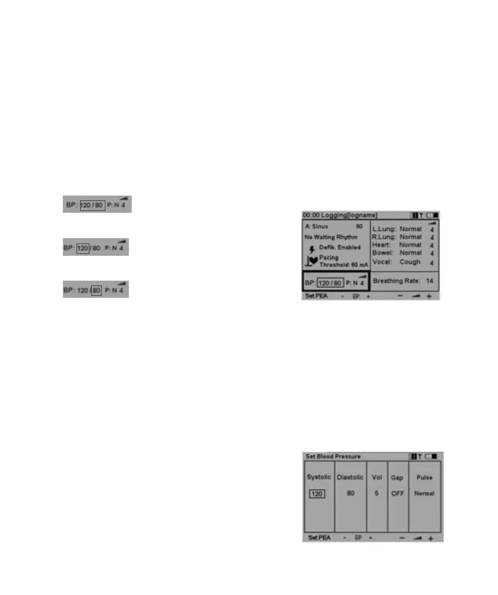 If the Running rhythm is a rhythm with no BP, i.e.VF or Asytole, BP will automatically be set to 0/0.