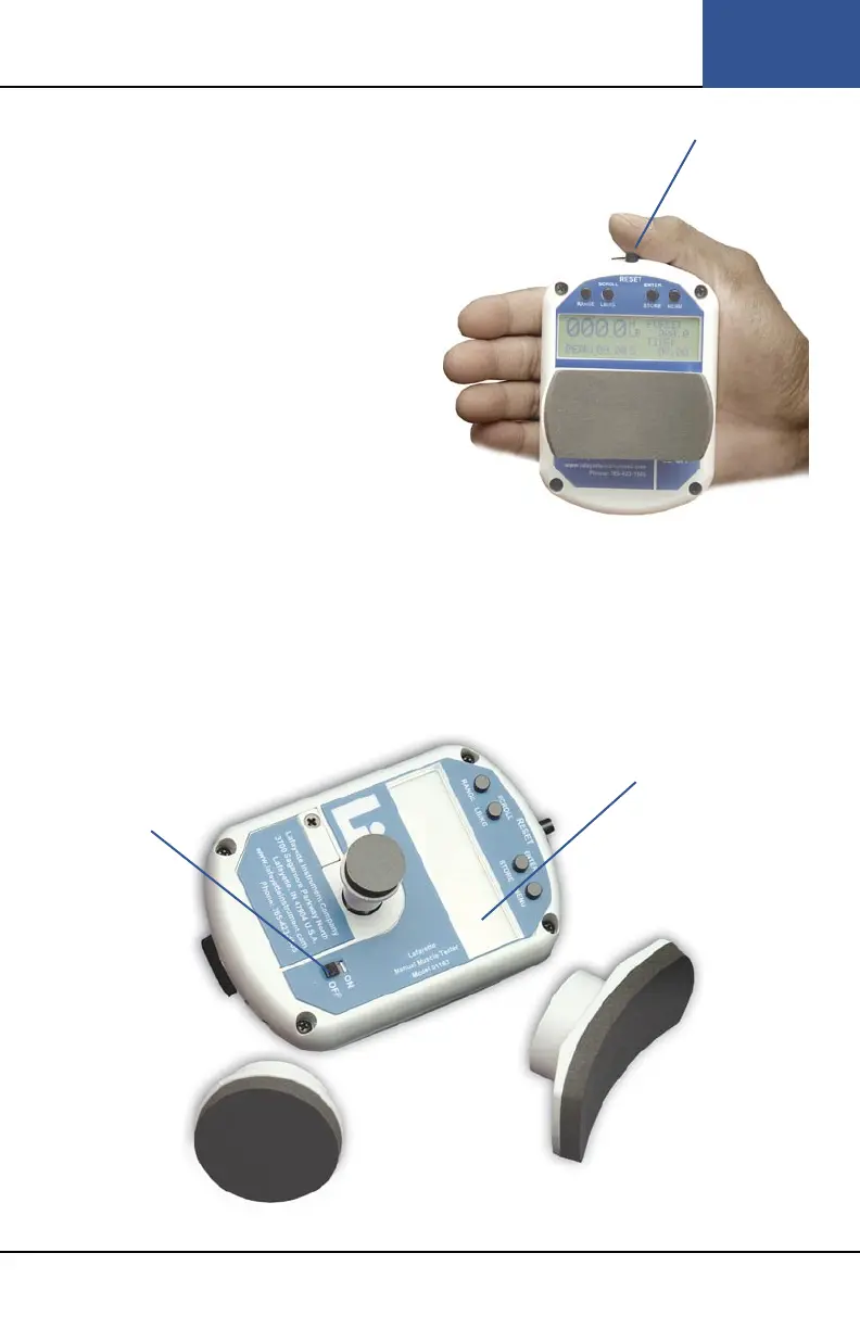 RESET button (1) with the thumb. All of the other buttons are pressed using the opposite