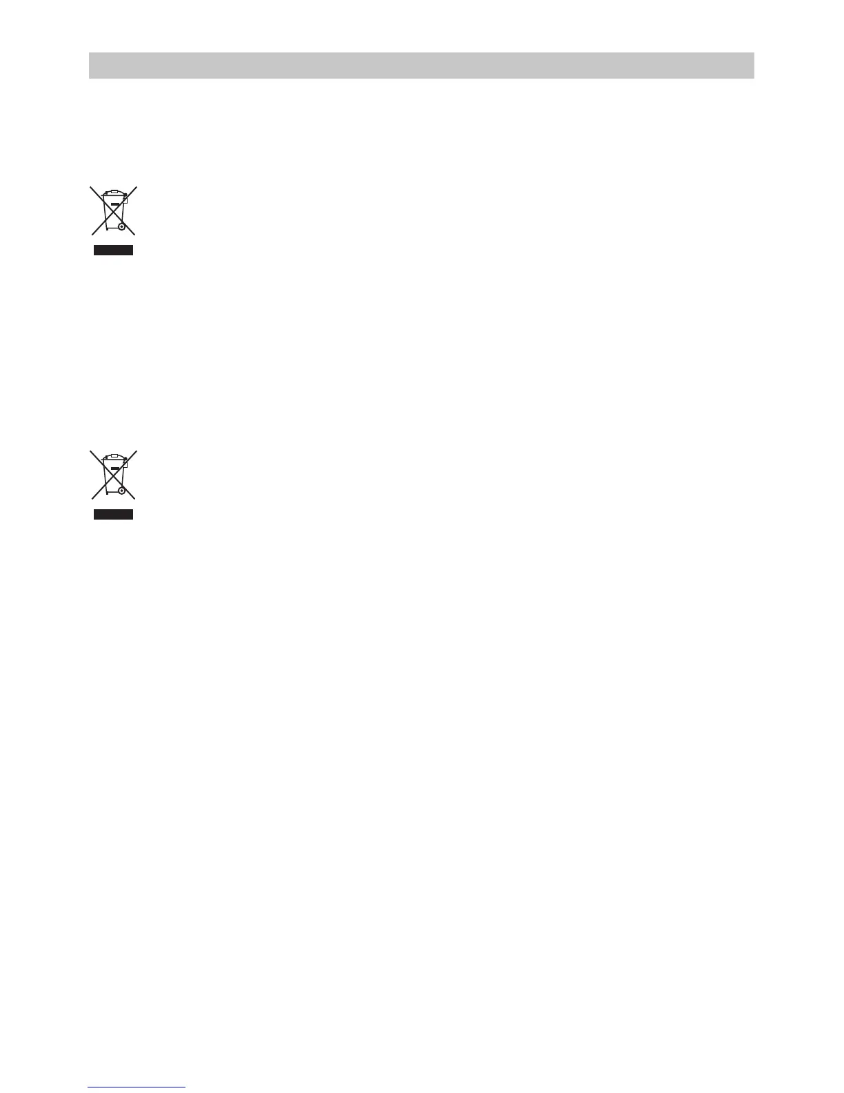 The crossed bin symbol shown on the equipment indicates that at the end of its working life the product must be collected