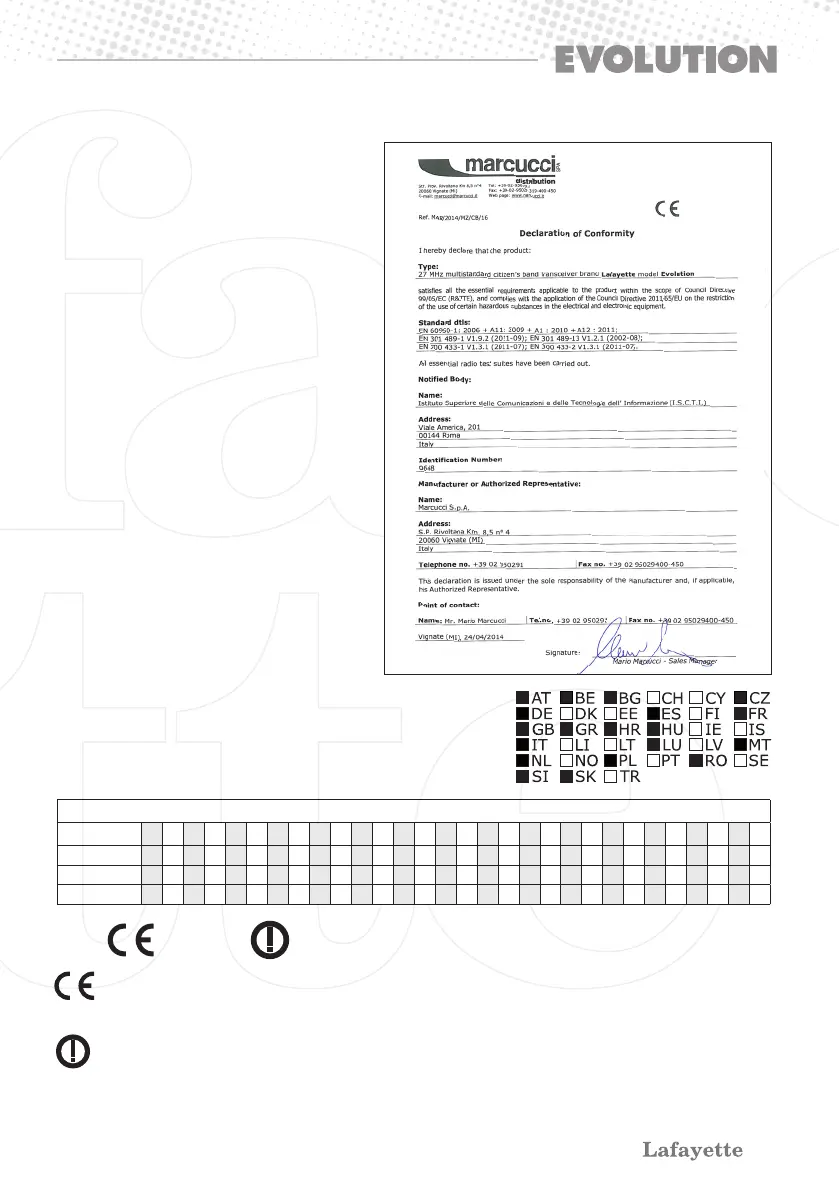 Hiermit erklärt Marcucci SpA daß sich das Gerät Lafayette