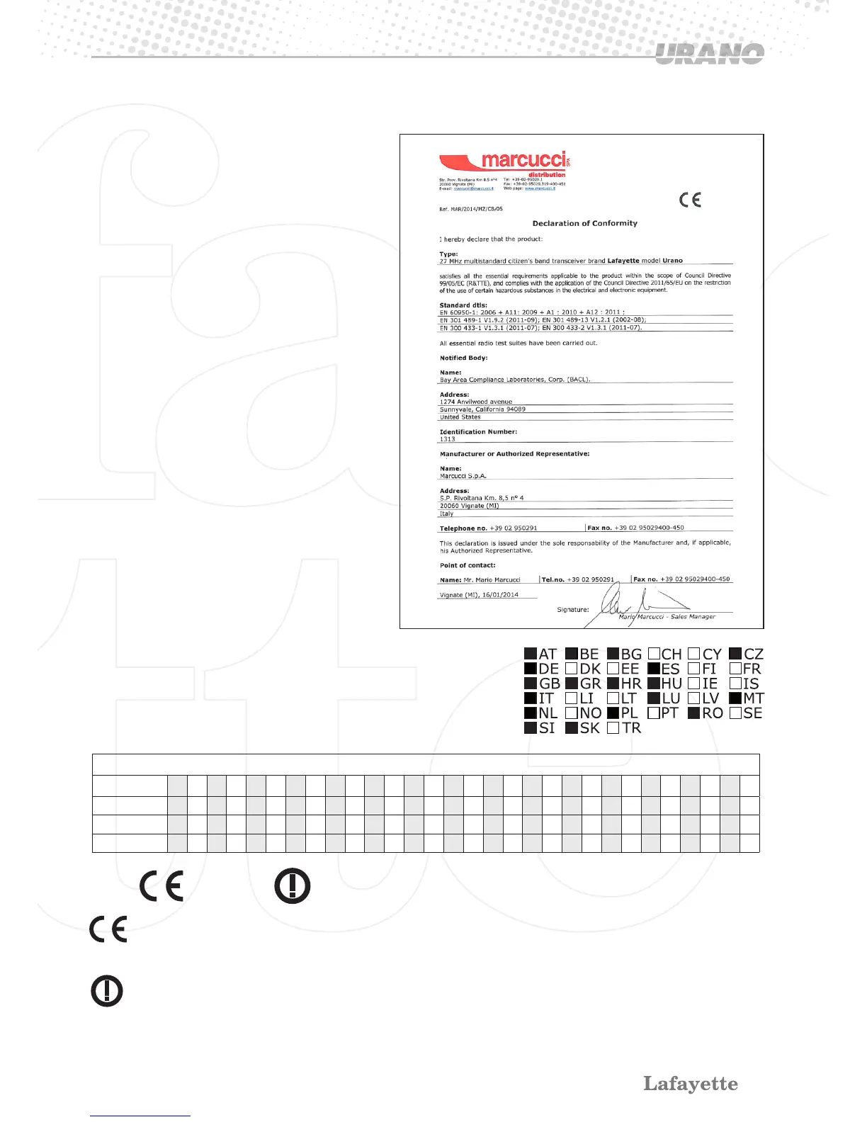 Hiermit erklärt Marcucci SpA daß sich das Gerät Lafayette