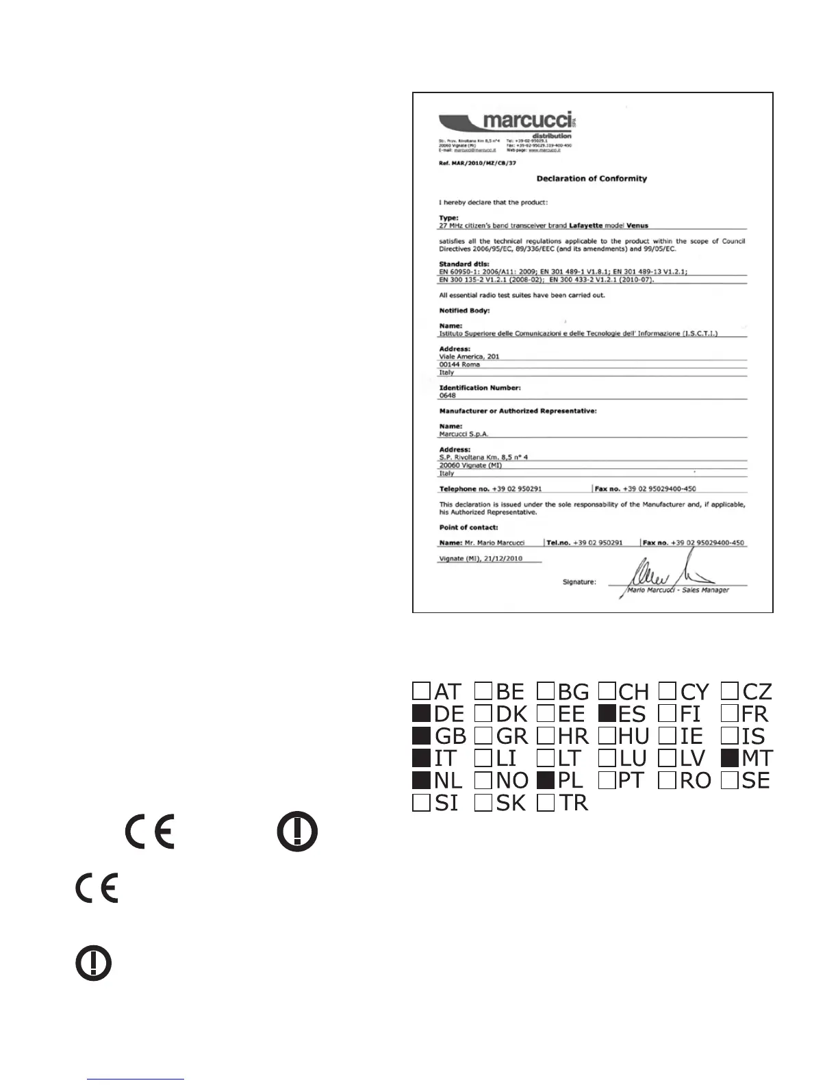 Hiermit erklärt Marcucci SpA daß sich das Gerät Lafayette