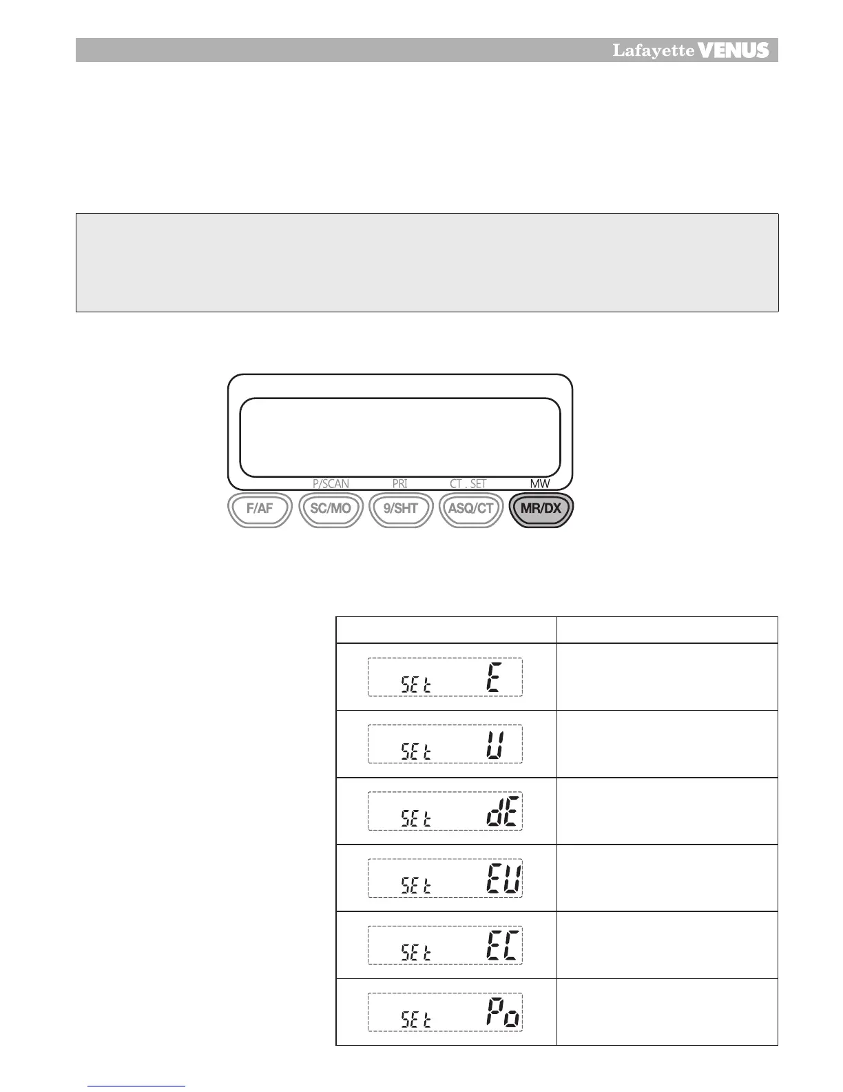 Hold MR/DX button and Power on. It is menu mode.