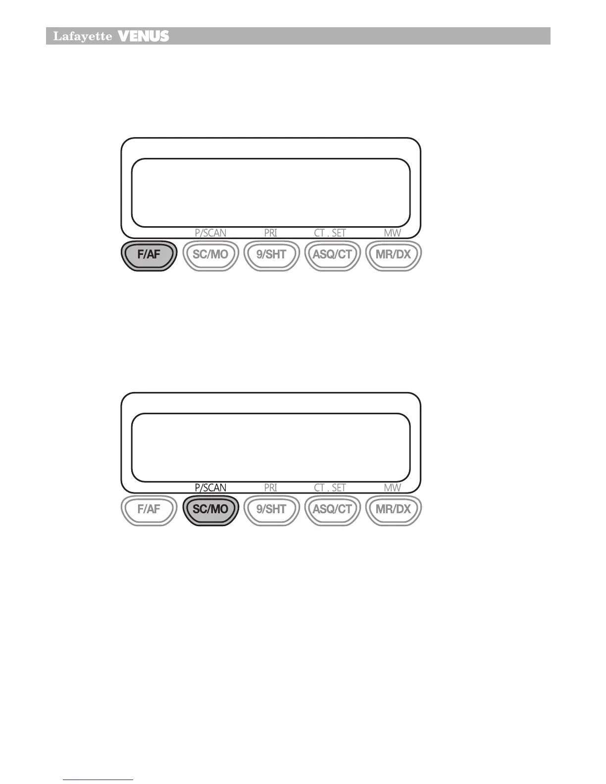 To use the third function (P/SCAN,PRI,CT.SET,MW), press F/AF and press the