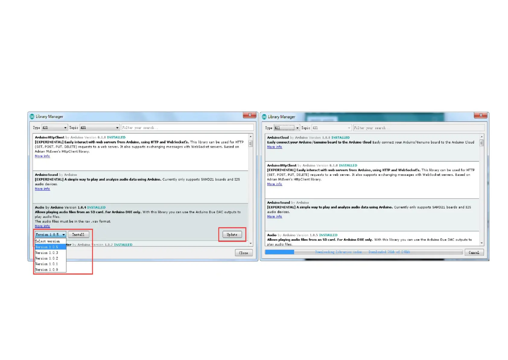 Then the library manager will open and you will find a list of libraries that are already installed or ready for installation. In this example