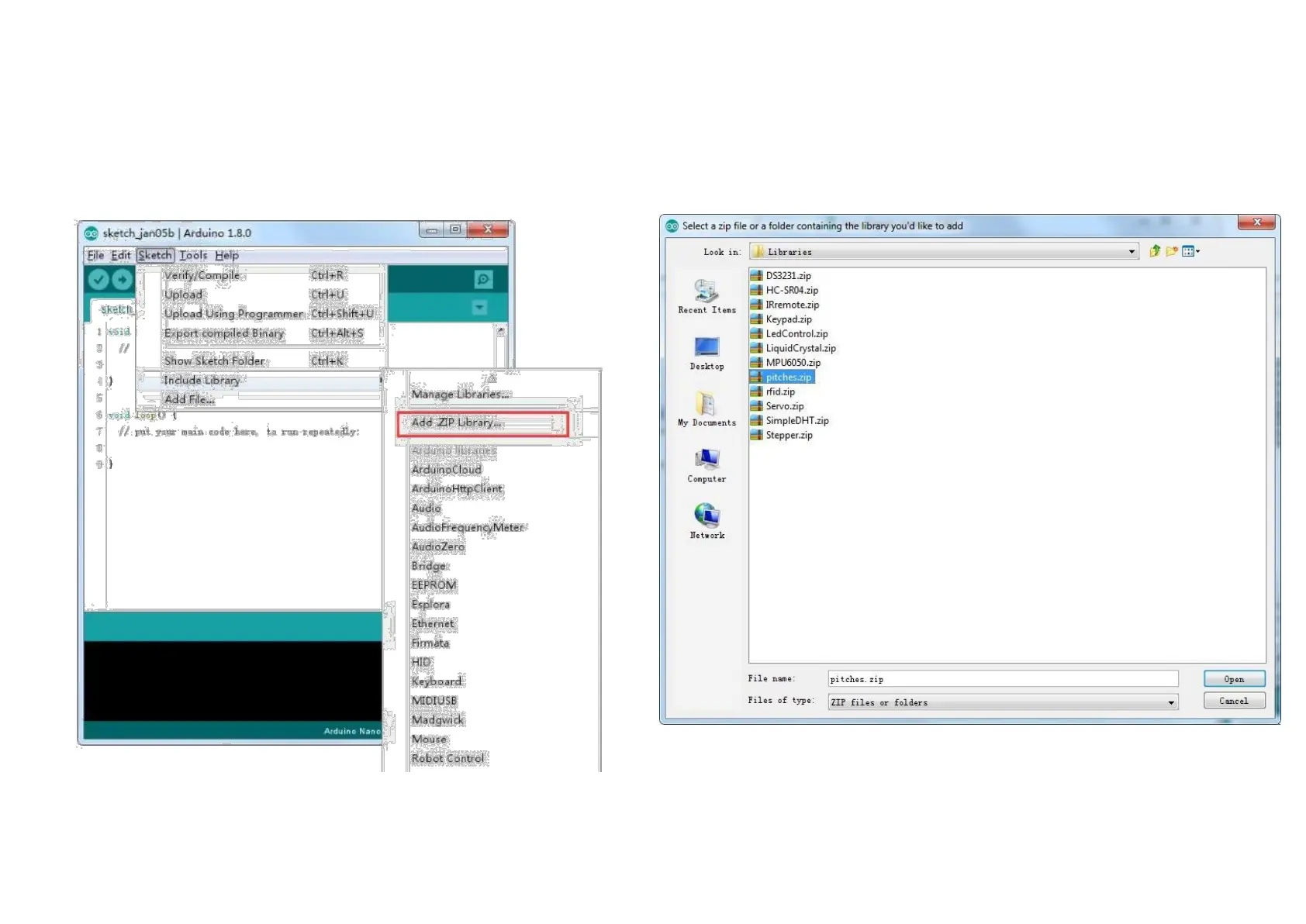 You will be prompted to select the library you would like to add. Navigate to the .zip