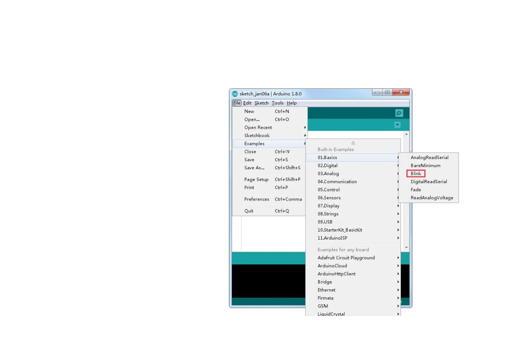 menu system under File > Examples > 01.Basics