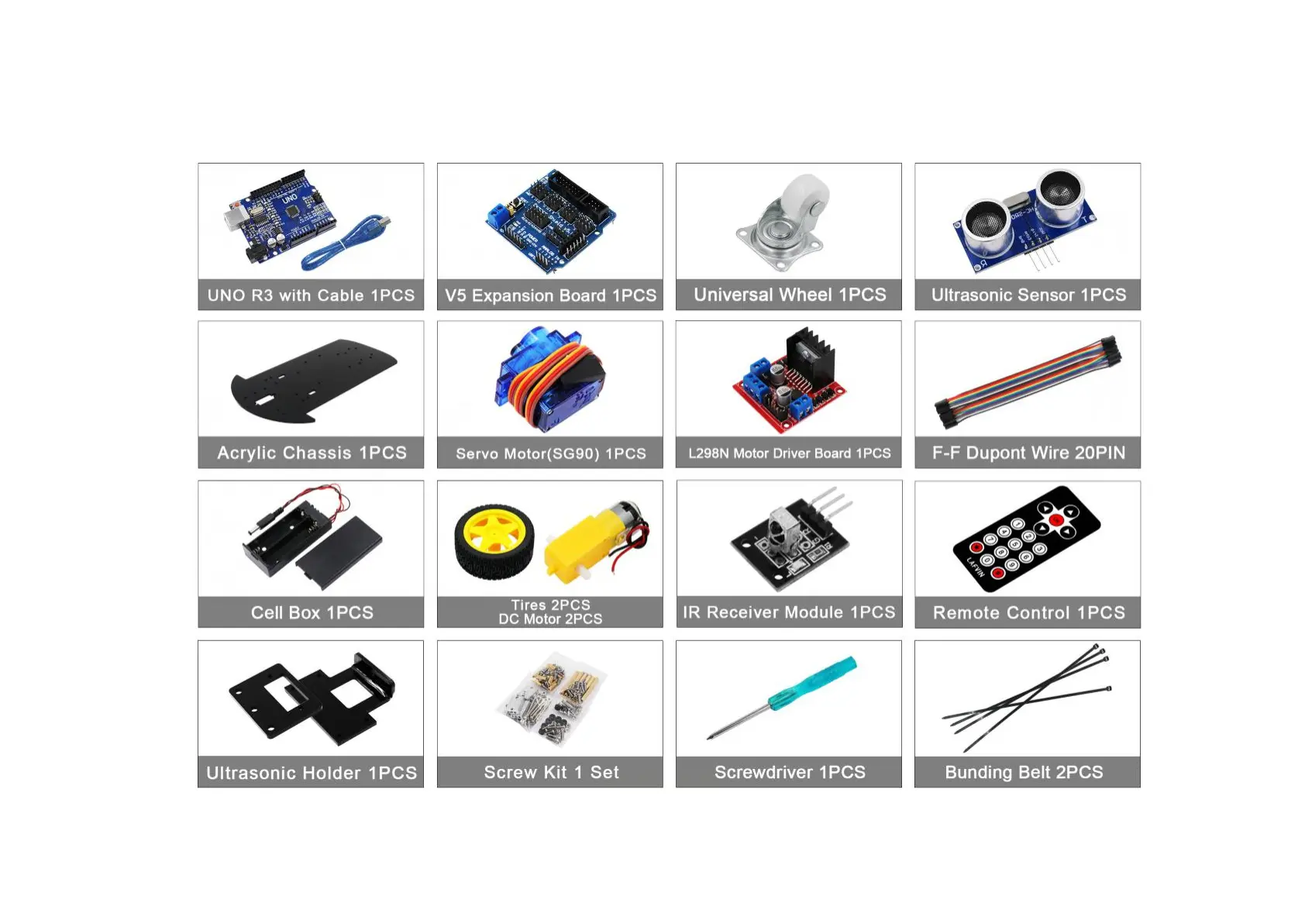 LAFVIN Obstacle Avoidance Smart Car Kit - Packing List