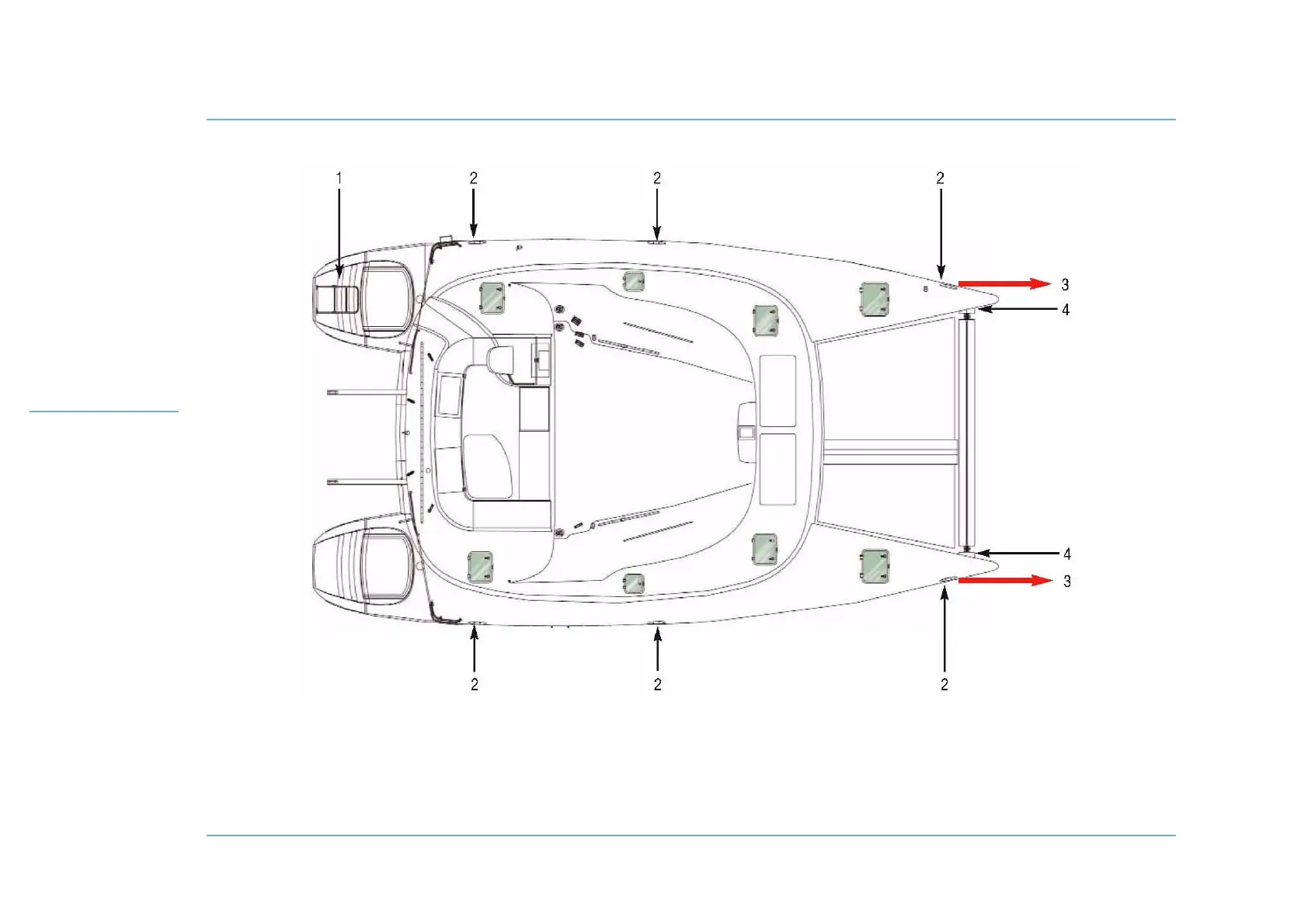2 - Mooring cleats and Anchoring of lifelines. 4 - Anchor bridle fastening.