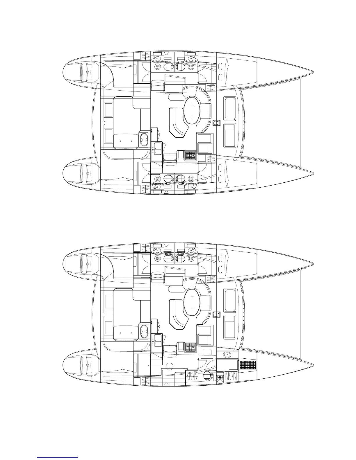 Lagoon 410-S2 - Accommodation Charter Version Layout; Accommodation US Owners Version (3 Cabins;3 Heads) Layout