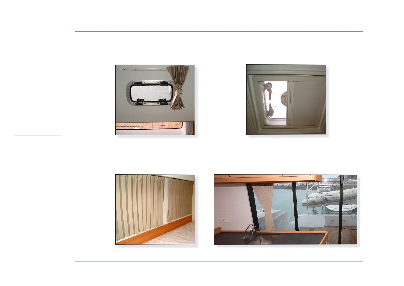 Lagoon 42 - Portholes - Hatches - Windows; Porthole + Curtain; Blind and Mosquito Screen on Deck Hatch; Cabin Curtain