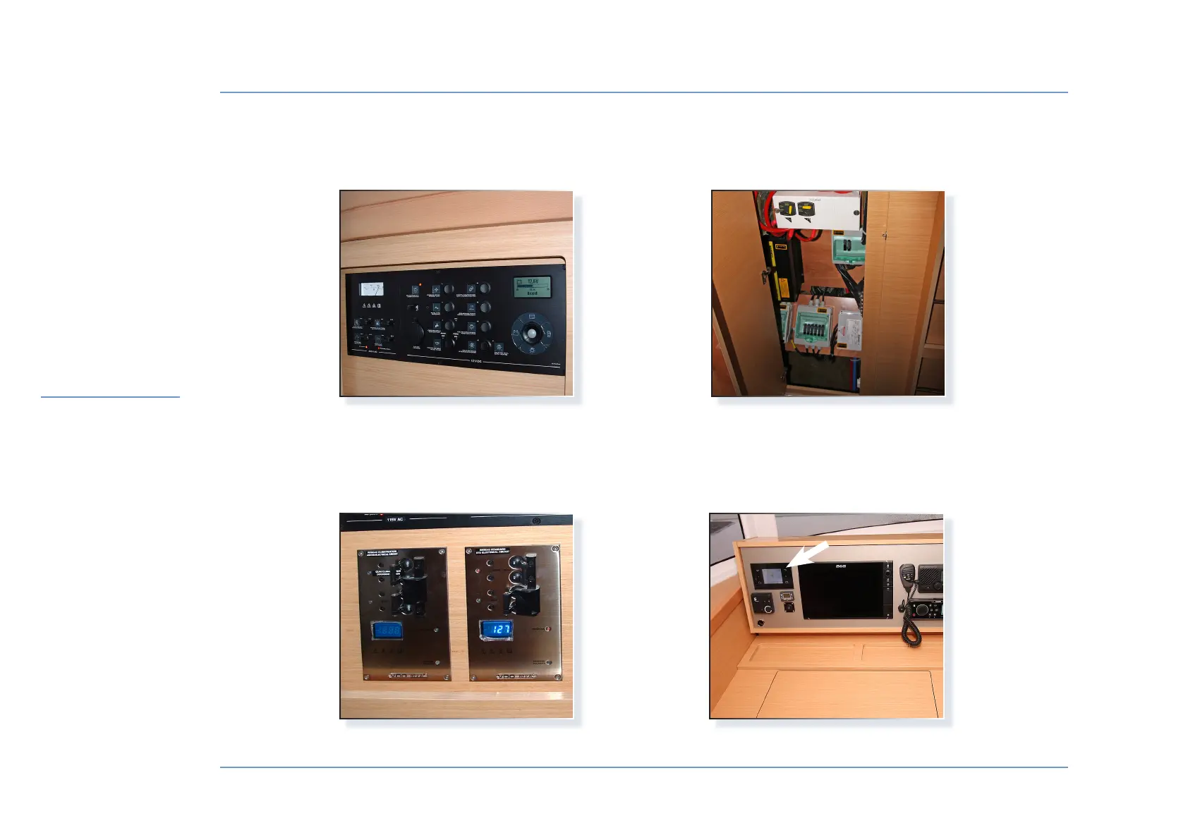 Lagoon 42 - Electric Panels - Selectors - Automatic Breakers; Consuming Appliances Circuit Breakers; 110 V - 220 V Supply Selection Panels; Auxiliary Batteries Charge Status Check Screen