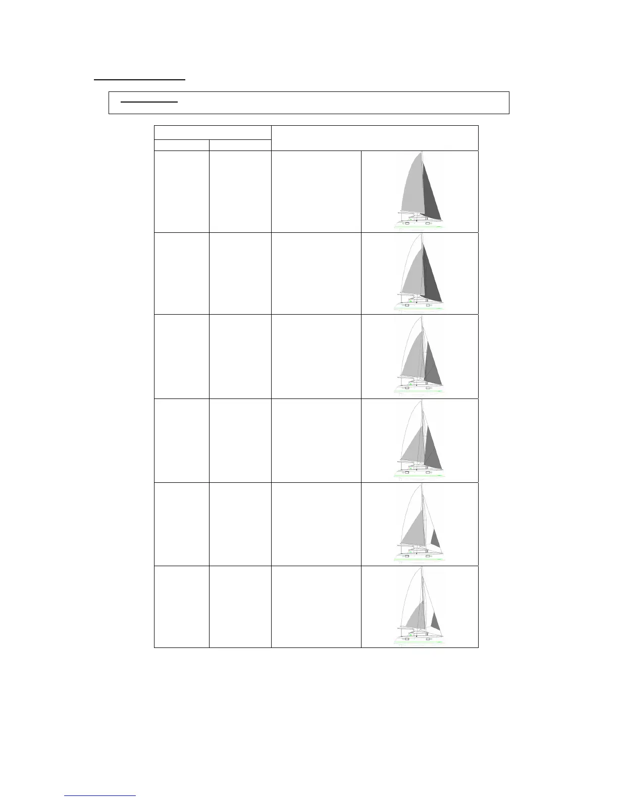 : Sail settings other than these recommendations may cause the mast to fail.