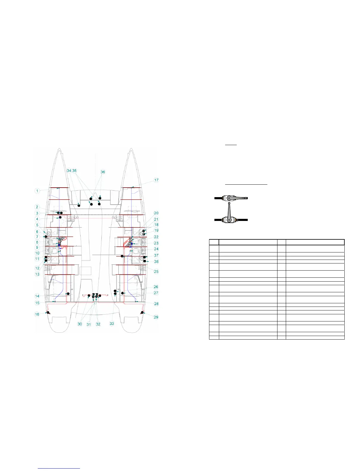 12 Aft port toilet inlet 31 Manual bilge pump (2 x 0.9l/min)