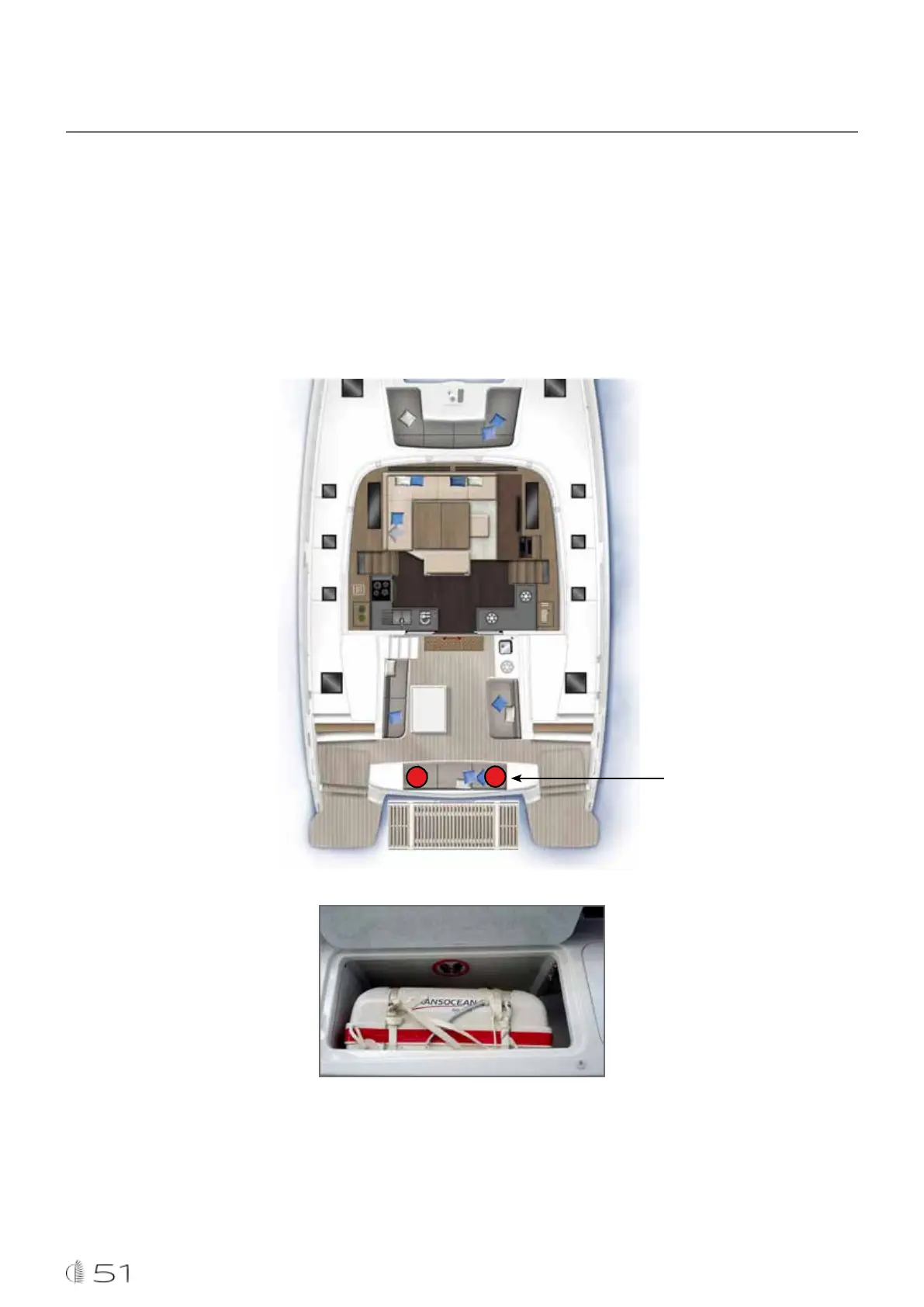 Location of liferafts The 2 liferaft compartments (Item 1) are accessible