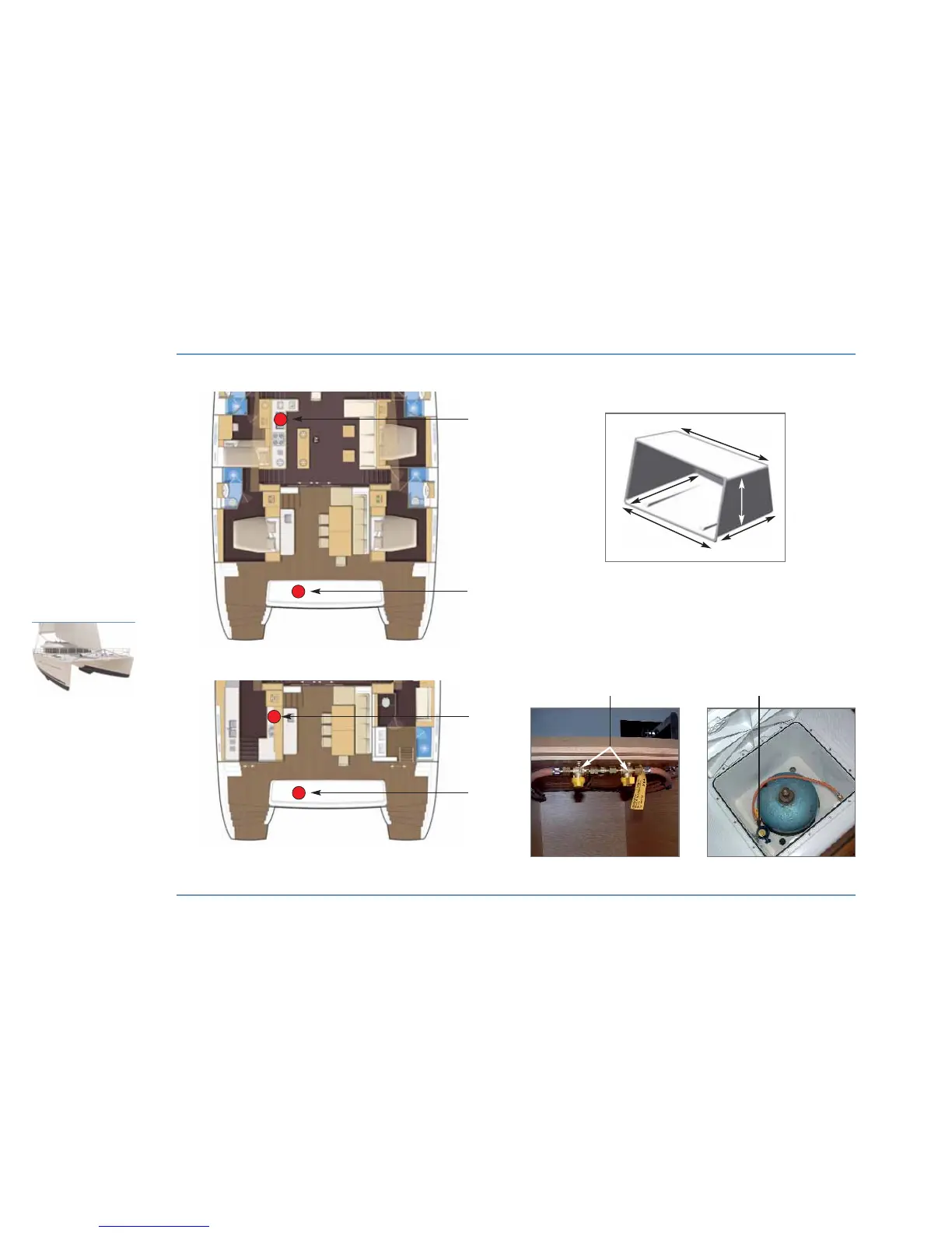 Lagoon 620 - Gas Valves - Life Raft Case Measurements; Life Raft Measurements; Galley; Saloon Version; Galley; Hull Version