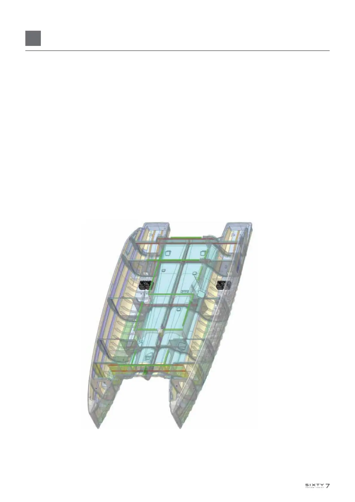 Option - the Lagoon SIXTY 7 can be fitted with one 120-litre and one 135-litre grey water tank in each float, i.e. A total capacity