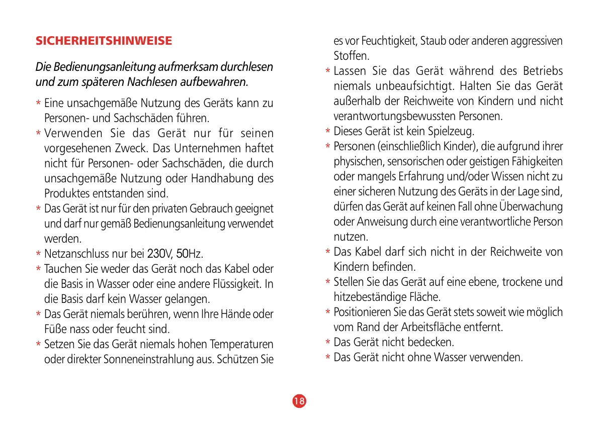 niemals unbeaufsichtigt. Halten Sie das Gerät