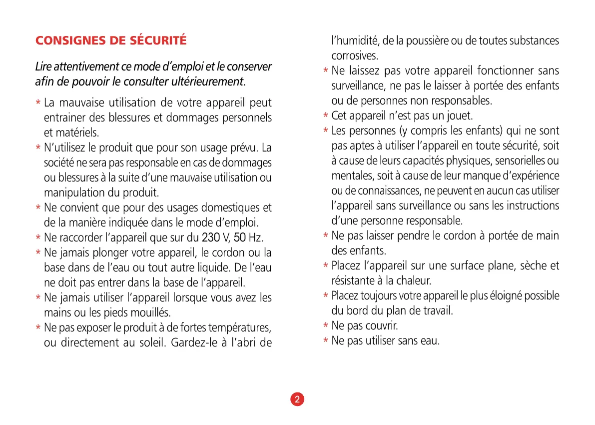 Ne raccorder l’appareil que sur du 230 V, 50 Hz.