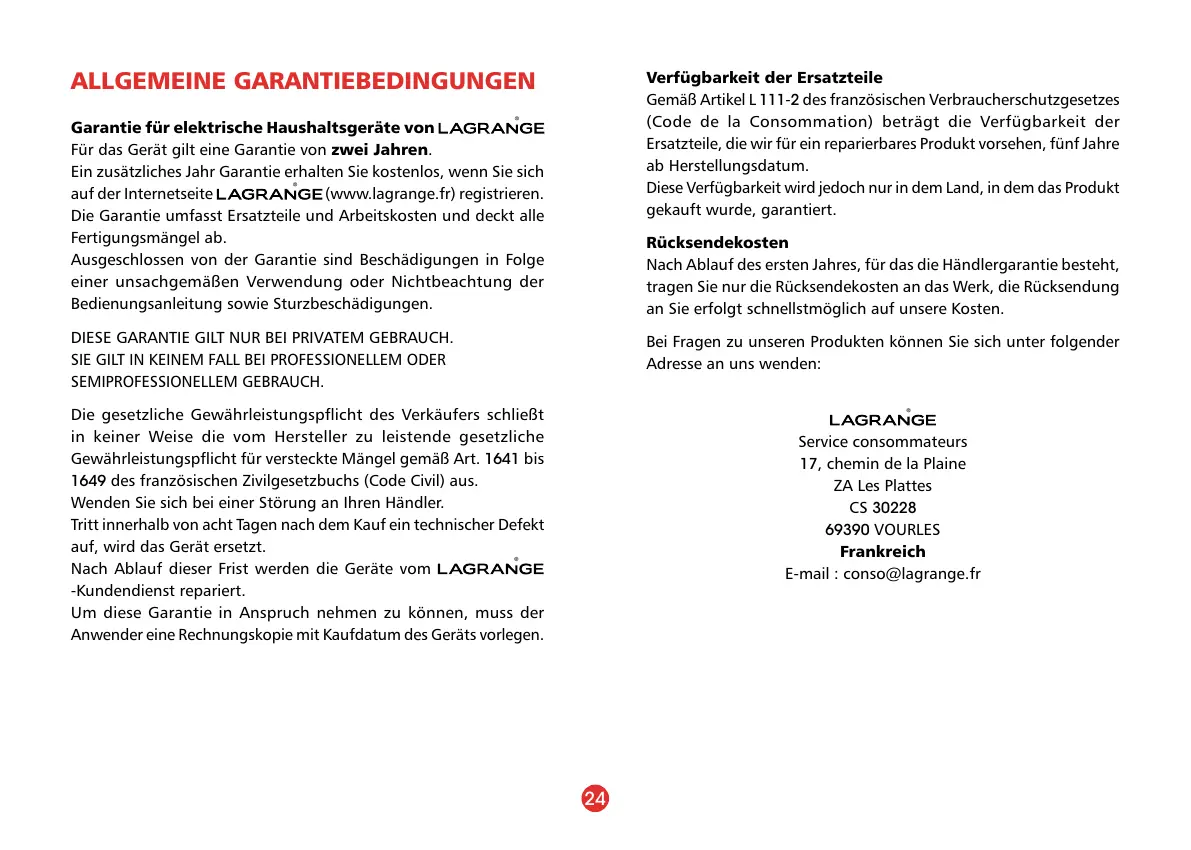 auf der Internetseite (www.lagrange.fr) registrieren.