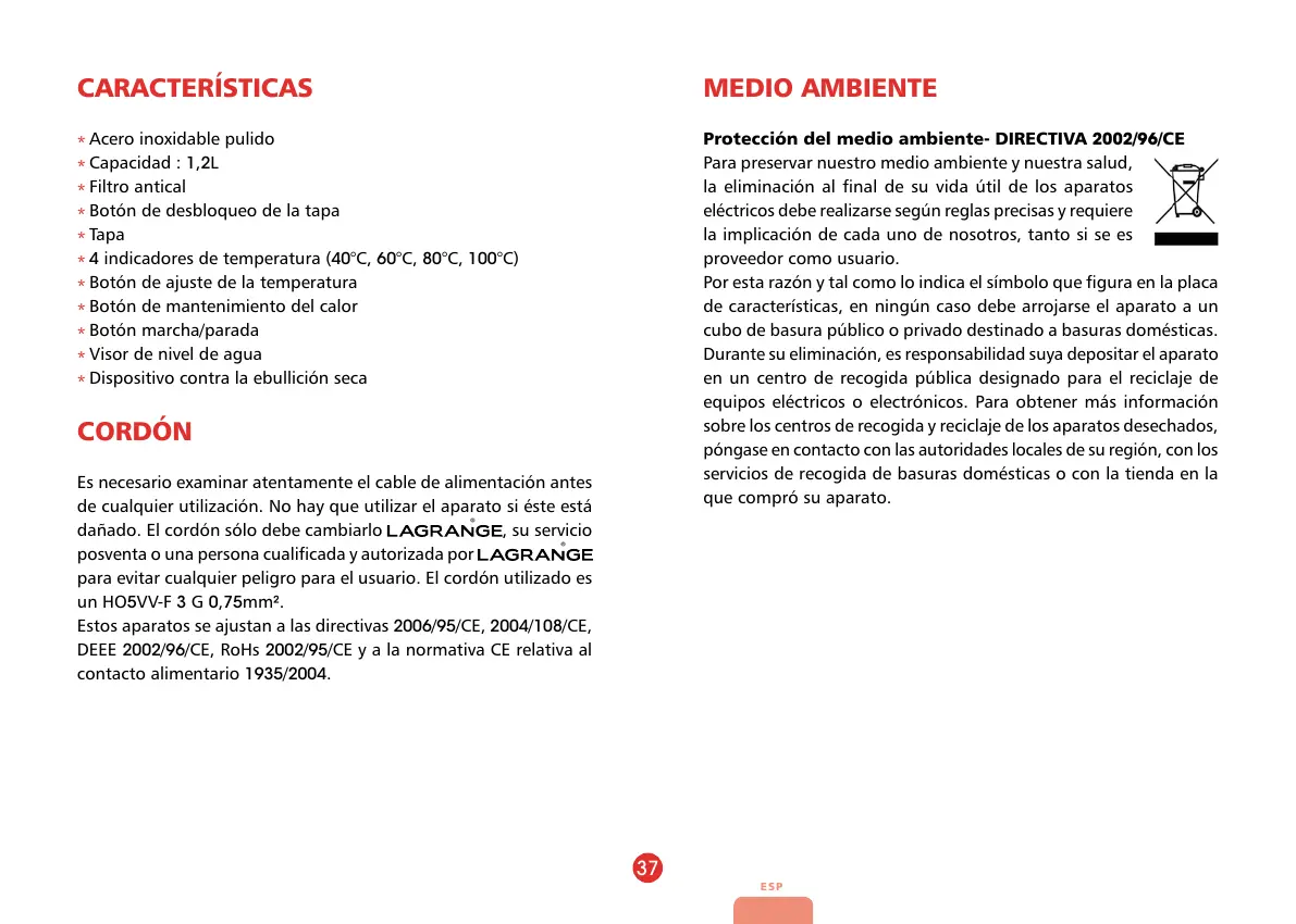 para evitar cualquier peligro para el usuario. El cordón utilizado es