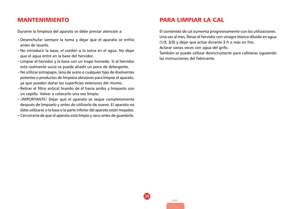 Limpiar el hervidor y la base con un trapo húmedo. Si el hervidor