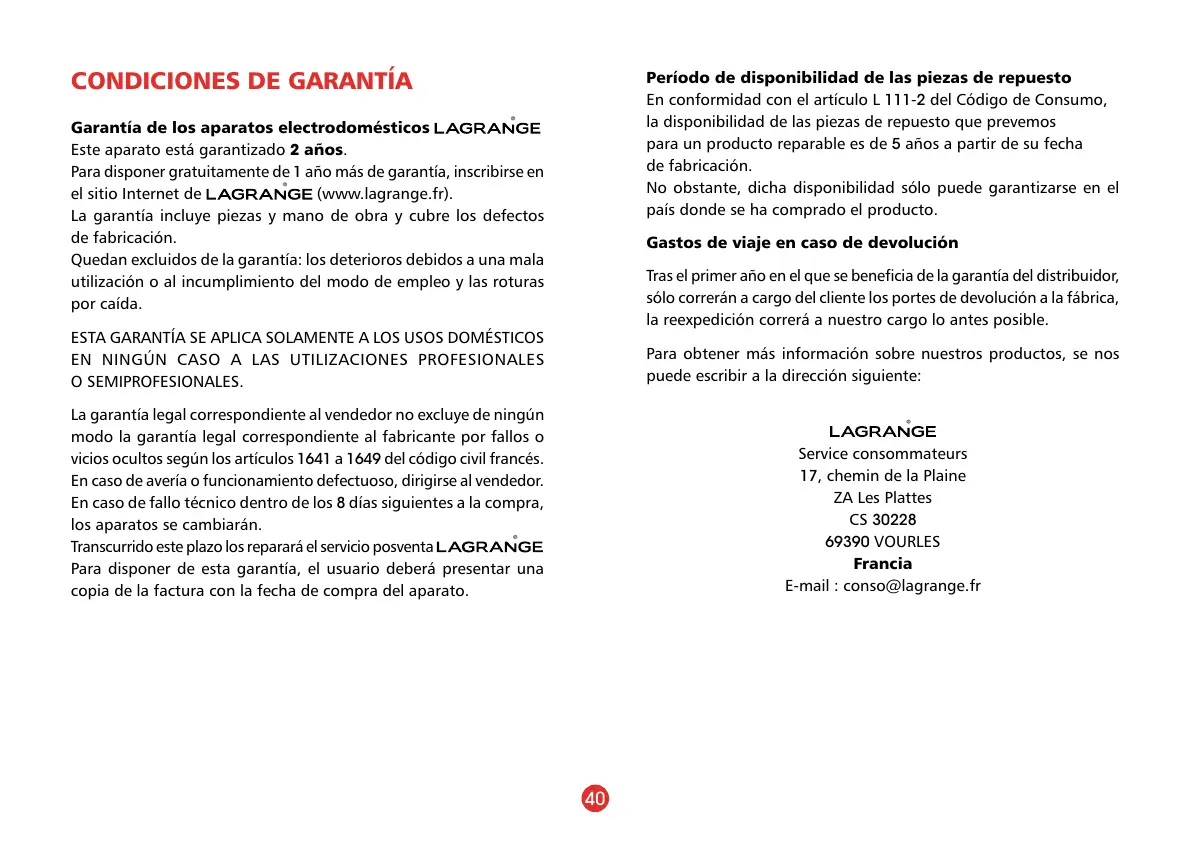 En caso de avería o funcionamiento defectuoso, dirigirse al vendedor.
