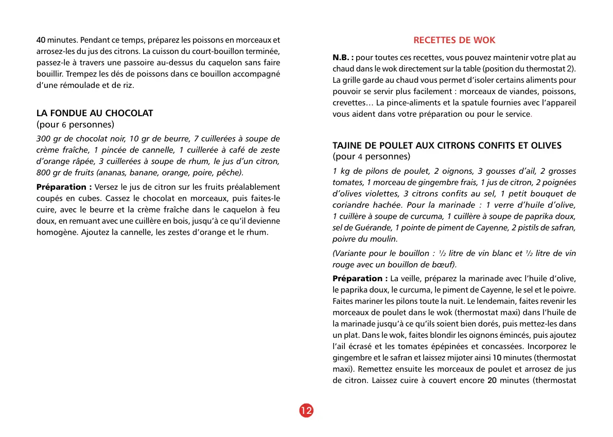 chaud dans le wok directement sur la table (position du thermostat 2).