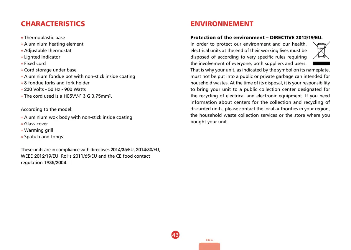 WEEE 2012/19/EU, RoHs 2011/65/EU and the CE food contact