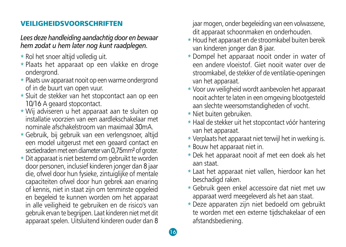 Voor uw veiligheid wordt aanbevolen het apparaat