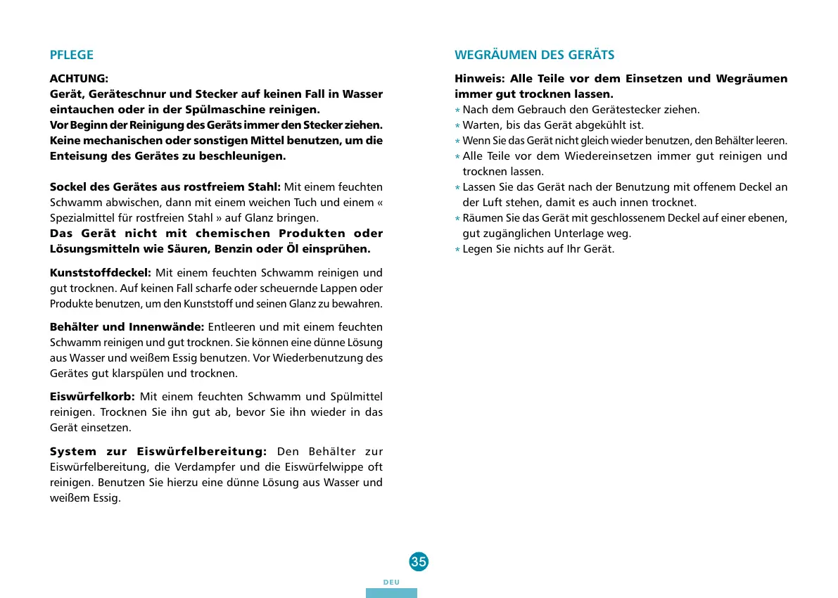 Wenn Sie das Gerät nicht gleich wieder benutzen, den Behälter leeren.
