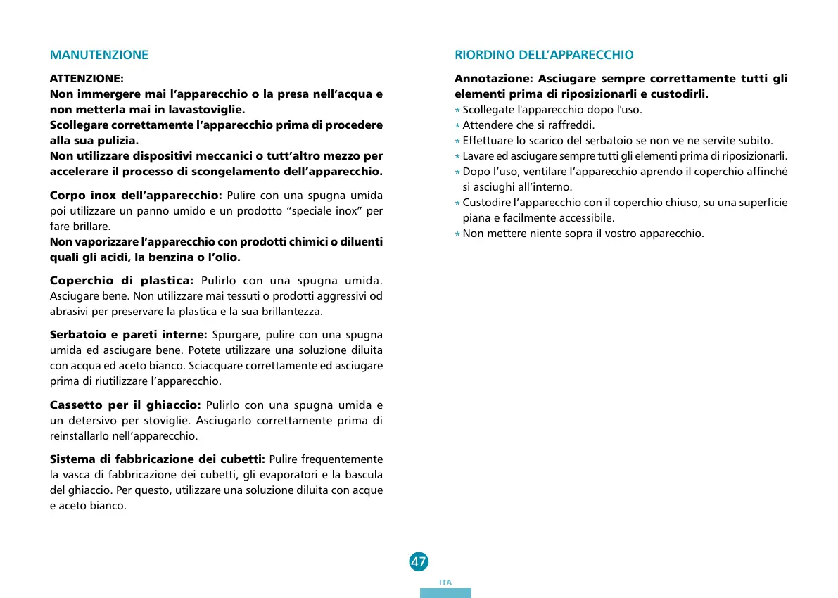 Sistema di fabbricazione dei cubetti: Pulire frequentemente