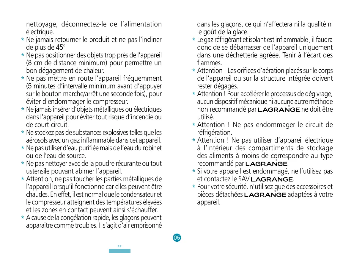 Le gaz réfrigérant et isolant est inammable ; il faudra