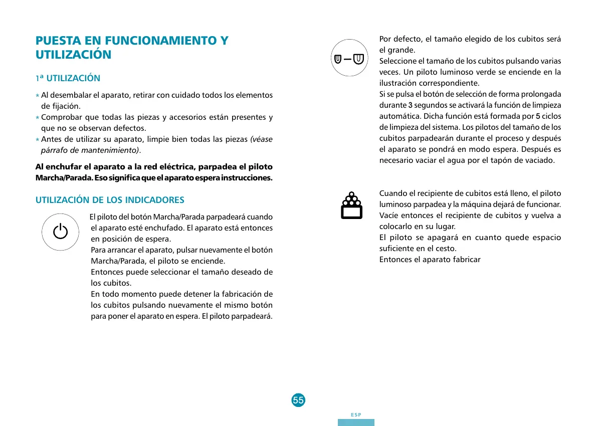 Vacíe entonces el recipiente de cubitos y vuelva a