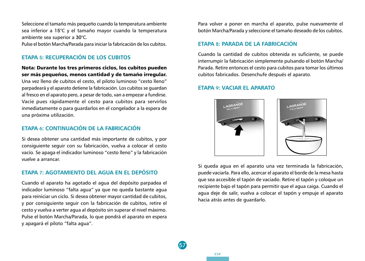 Si queda agua en el aparato una vez terminada la fabricación,