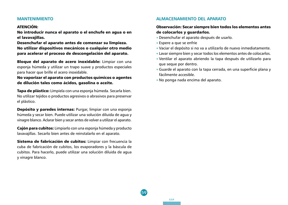 Cajón para cubitos: Limpiarlo con una esponja húmeda y producto