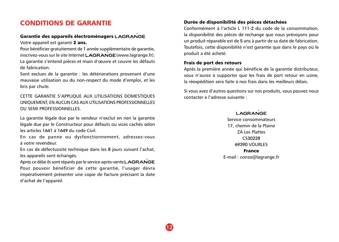 CETTE GARANTIE S’APPLIQUE AUX UTILISATIONS DOMESTIQUES