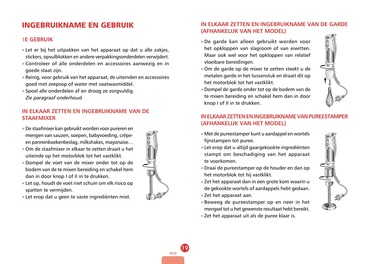 De staafmixer kan gebruikt worden voor pureren en