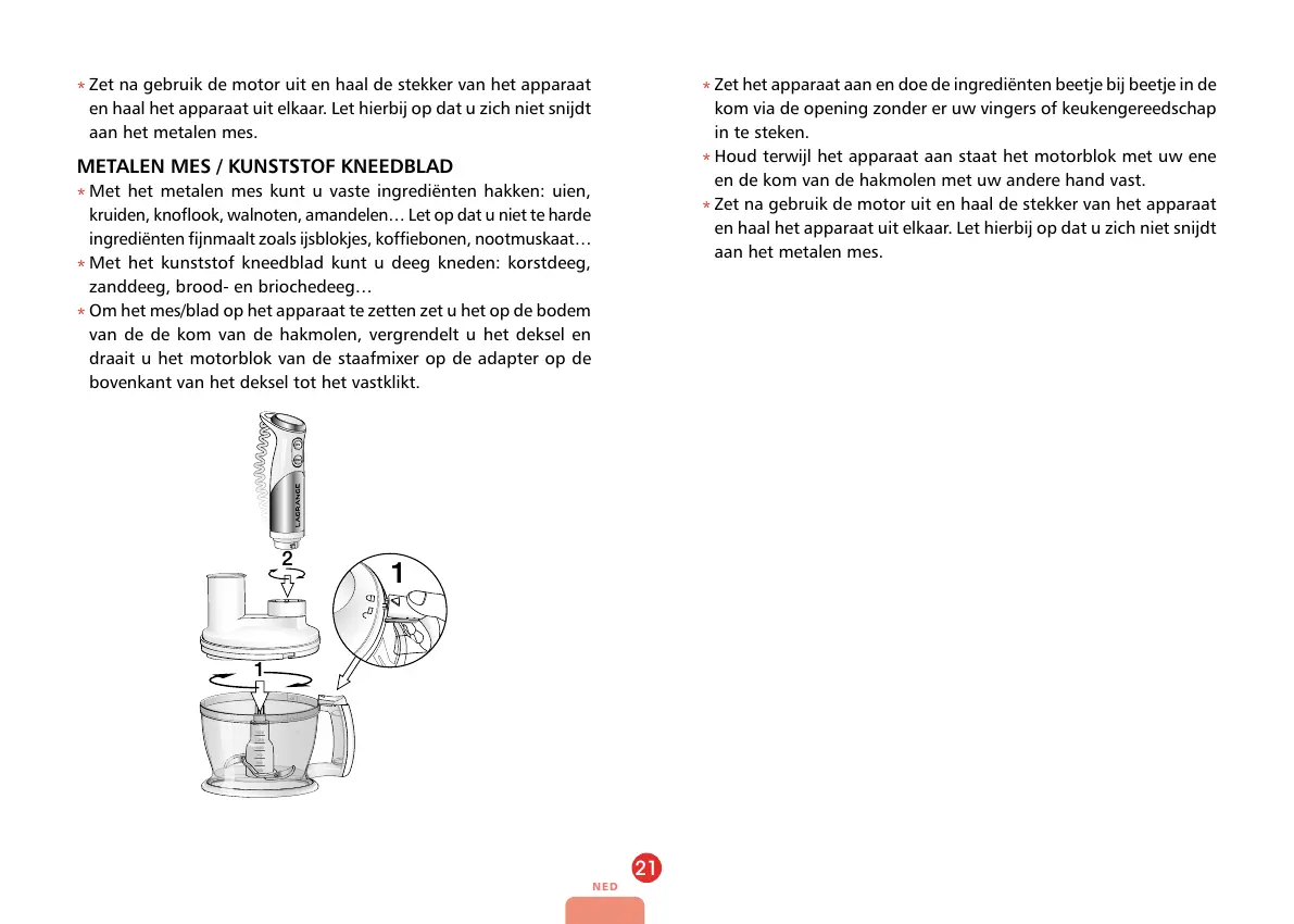 Met het metalen mes kunt u vaste ingrediënten hakken: uien,