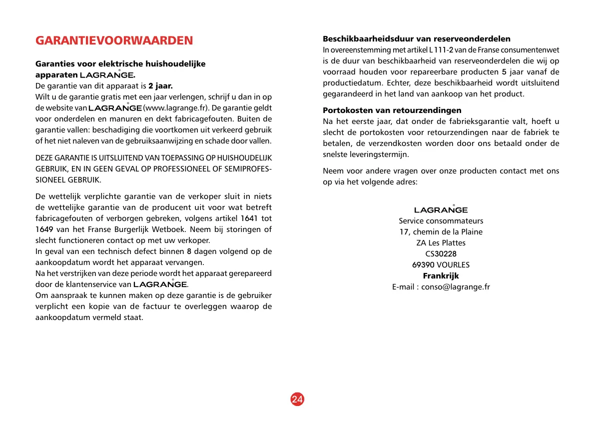 DEZE GARANTIE IS UITSLUITEND VAN TOEPASSING OP HUISHOUDELIJK